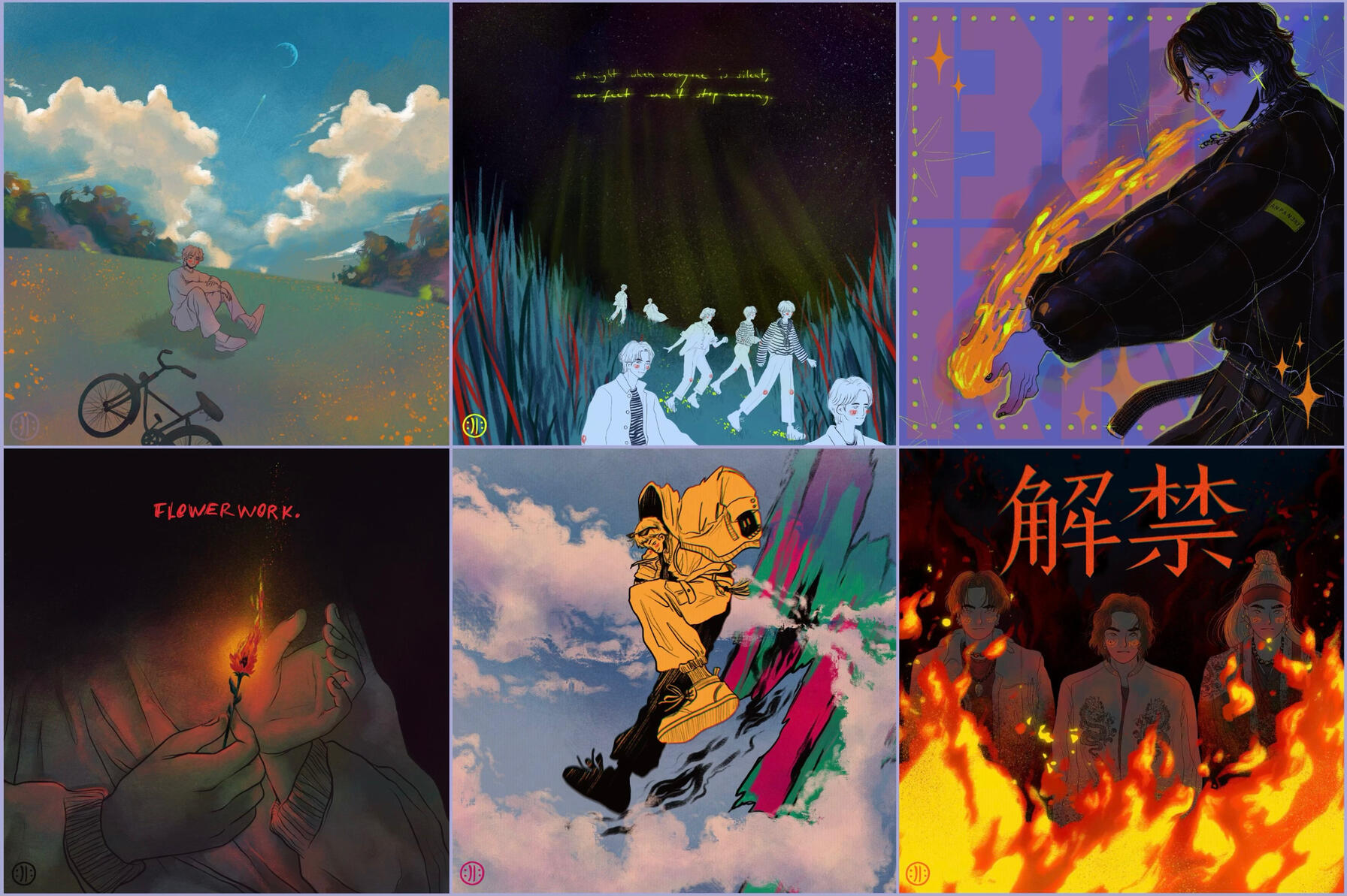 hey i'm jay, a self-taught artist who finds inspiration in bangtan's music and the trouble that is everyday life. i do mostly lyric interpretations and personal art with dark themes and highlight colors.